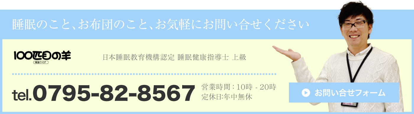 100匹目の羊は創業(久下製綿所)から100年以上ものあいだ、丹波市を中心とし、たくさんのお客様の眠りを支えてきました。最近では、およそ1000人以上もの方々の睡眠のご相談を受けながら、その人に合った最適の寝具を提供しております。