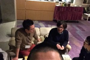 あまりにも集中していたせいで総会中の写真がなく、懇親会以降の写真のみになります。二次会では新潟県の笹原さん(楽眠の家 ふとんの志なのや)、福岡県の岡田さん(まくらと眠りのお店 いろは)、和歌山県の川村さん(ふとん工房かわむら)、愛知県の小野さん(小野ふとん店)、三重県の植村さん(快眠屋おの)と同じテーブルに混ぜていただき、お話もさせていただきました。みなさん、とても優秀で業界の最先端のような方たちです。いつも刺激と笑いをいただいています。楽しい夜を過ごそうと思っていましたが、次の日に皆さんをのせて伊勢へとドライブだったので早めに部屋に帰り、温泉を愉しみました。