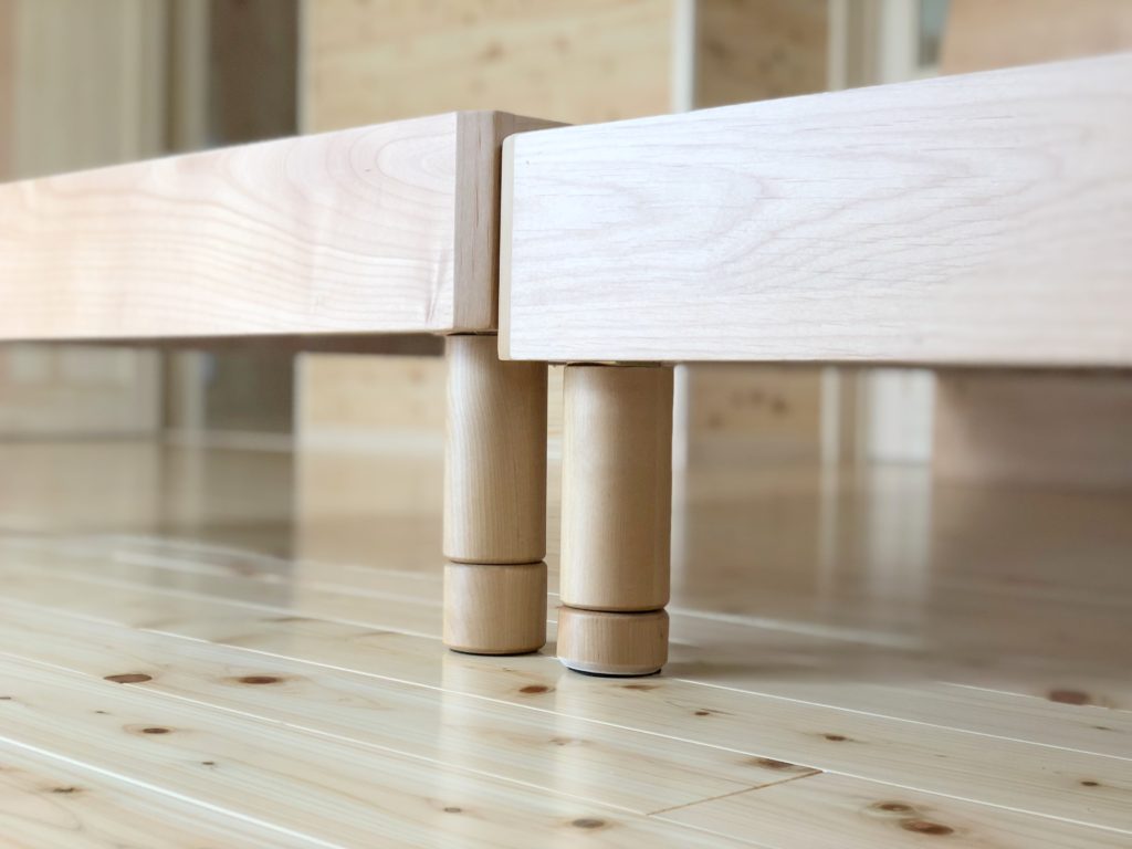 もともと二段階の高さ調節ができるフレームで、その継ぎ足し部分を20mmカットしてヘッドボード側も加工しました。